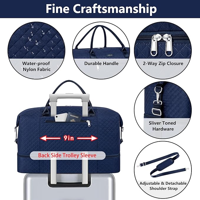 Weekender Bag for Women, Travel Duffel Bag Carry On Overnight Bag with Shoe Compartment Large Nylon Travel Weekend Tote Bag