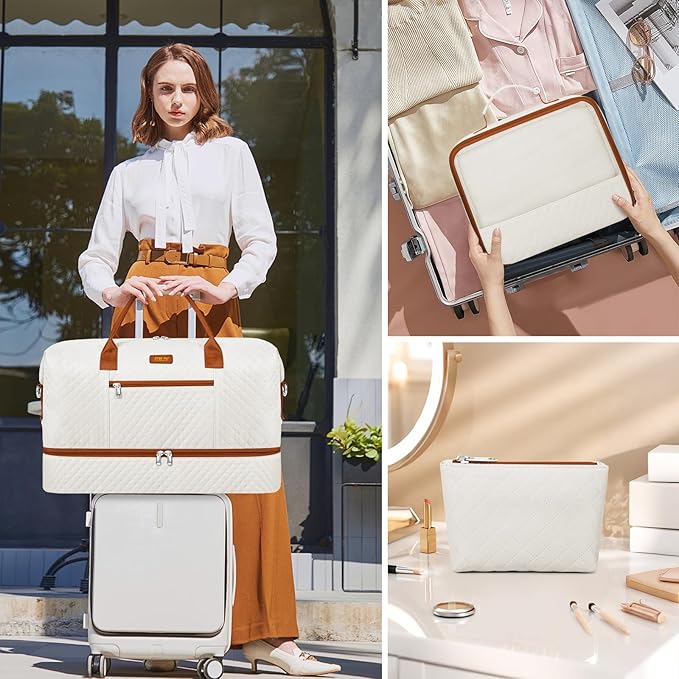 Weekender Bag for Women, Travel Duffel Bag Carry On Overnight Bag with Shoe Compartment Large Nylon Travel Weekend Tote Bag