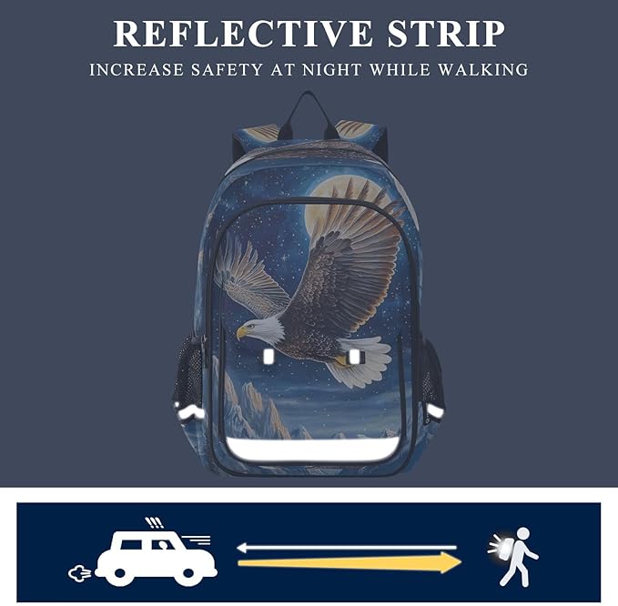 ALAZA Bald Eagle Wings American Moon Laptop Backpack Purse for Women Men School Bag 17 Inch Bookbag Student Boys Girls Travel Casual Daypack
