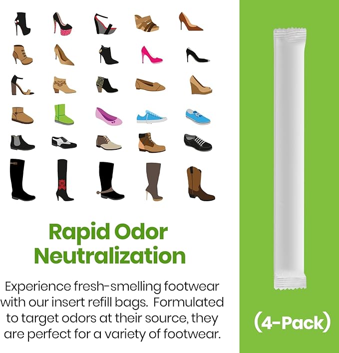- Rapid Odor Neutralization: Experience fresh-smelling footwear with our insert refill bags. Formulated to target odors at their source, they are perfect for a variety of footwear, including sneakers, cleats, climbing shoes, and boots