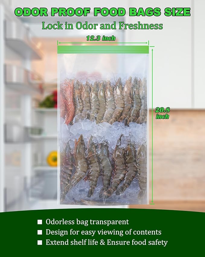 - [ENSURE FOOD FRESHNESS & SAFETY] Odor proof storage bags are made of food-safe material, durable, tear, double zipper seal design effectively locks in odors and freshness, extends food shelf life, odor proof food bags transparent design helps you to easily view the contents.