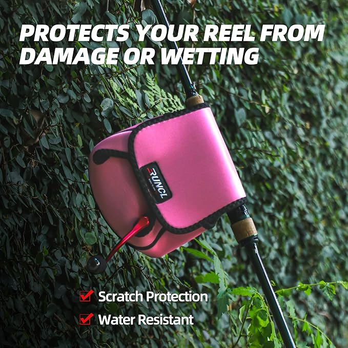RUNCL Spinning Reel Bag – Protective Storage Pouch for Baitcasting Reels & Spinning Reels, Lightweight & Durable, Ideal for Freshwater & Saltwater Fishing Trips (pink& Black)