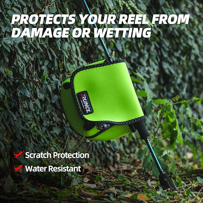 RUNCL Spinning Reel Bag – Protective Storage Pouch for Baitcasting Reels & Spinning Reels, Lightweight & Durable, Ideal for Freshwater & Saltwater Fishing Trips (Green & Black)