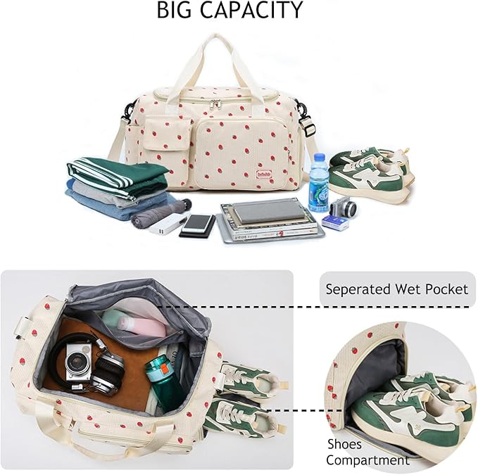 Gym Bag Sport Duffel Overnight Weekender Travel Bag with wet pocket and shoe pocket K01 Beige