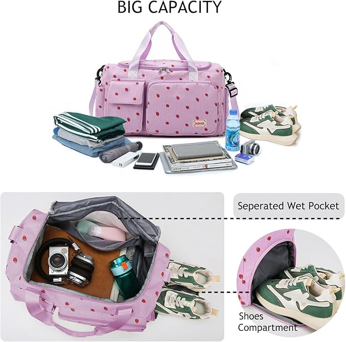 Gym Bag Sport Duffel Overnight Weekender Travel Bag with wet pocket and shoe pocket K05 Purple