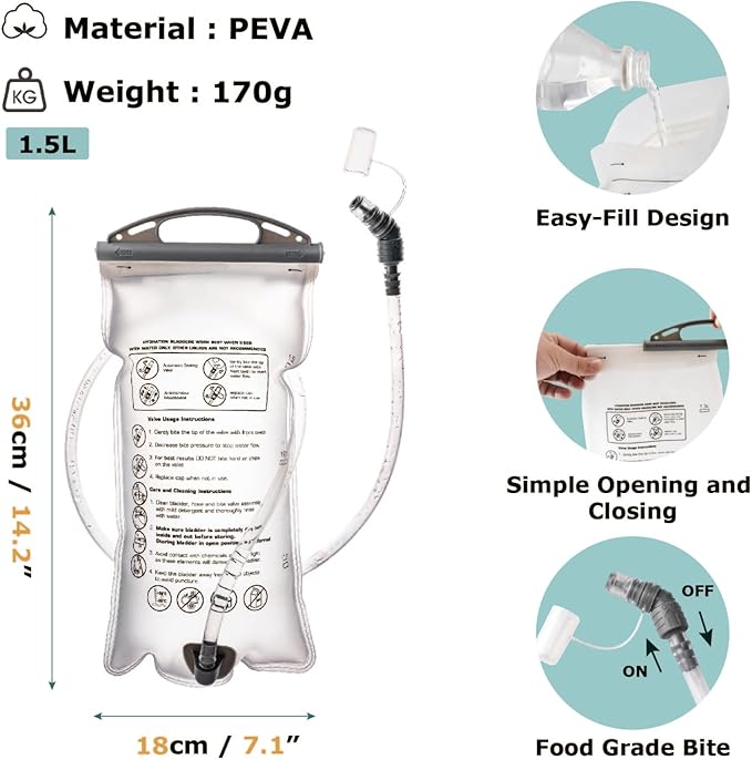 - Lightweight hydration backpack: Easily carries essentials with a main compartment for a 1.5 L or 2 L hydration bladder (sold separately or included), choose between the backpack only or bundled with a 1.5 L or 2 L water bladder, please select the options carefully