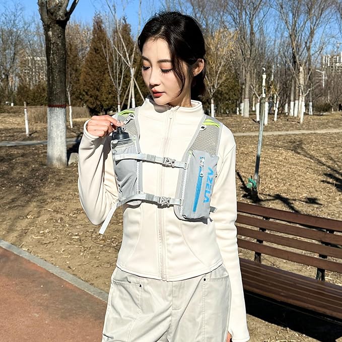 - Durable & Safe: Made with water-resistant nylon, premium zippers, and secure fasteners, this hydration backpack offers lasting durability. Reflective strips and a safety whistle enhance visibility and safety during morning/night runs and trails