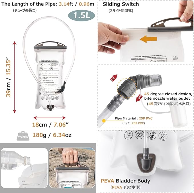 - Durable & Safe: Made with water-resistant nylon, premium zippers, and secure fasteners, this hydration backpack offers lasting durability. Reflective strips and a safety whistle enhance visibility and safety during morning/night runs and trails