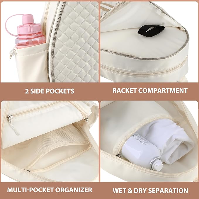 - Versatile Carry Options & Stylish Quilted Look - The tennis backpack with adjustable straps allow seamless switching between single-shoulder slinging and dual-shoulder backpacking, providing ergonomic comfort for extended wear. The trendy quilted pattern pairs effortlessly with sports bras, leggings, or casual outfits, making it a go-to accessory both on and off the court