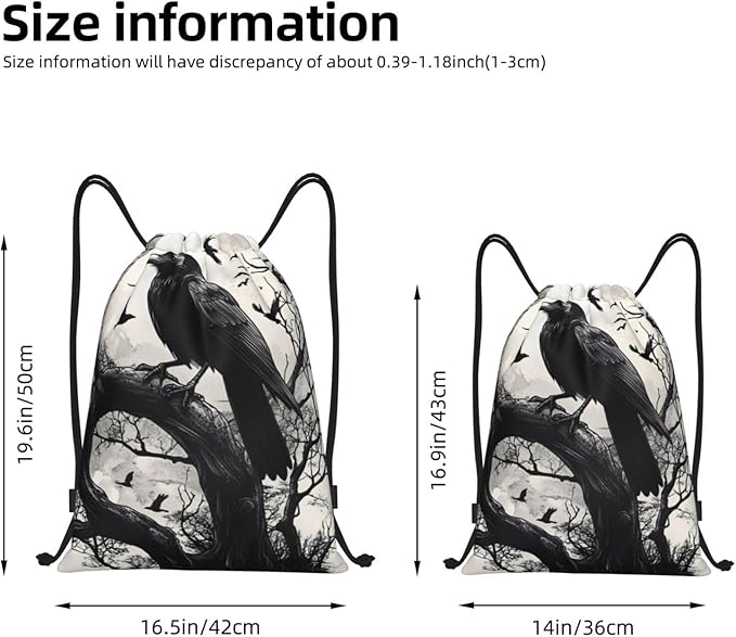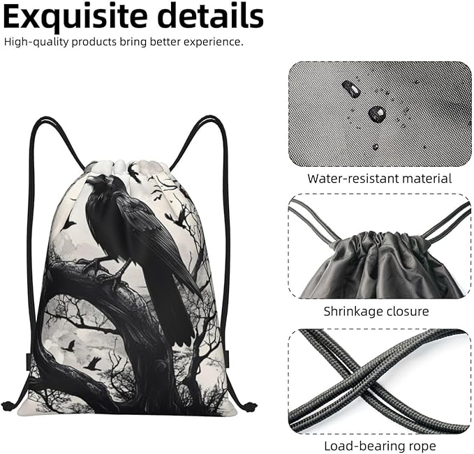 Black Crow Pattern Drawstring Backpack Bag - Sports Gym Sack For Women Men