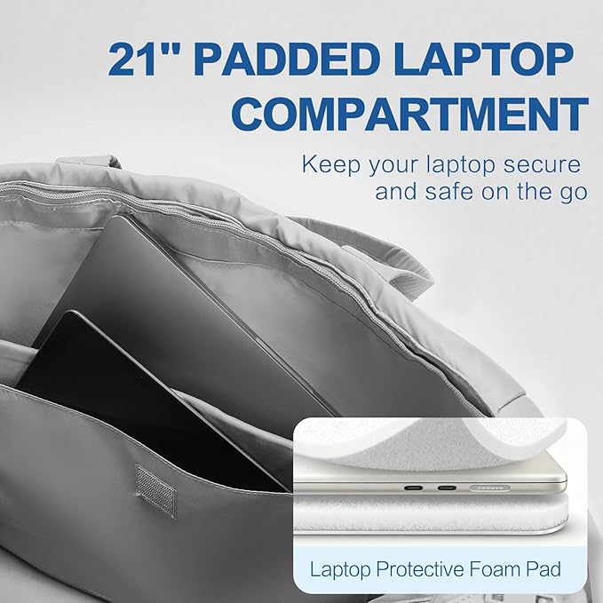 - 【Spacious & Multi-Compartment Design】Never dig for your essentials again. This generously sized bag features multiple intelligent compartments to neatly store clothes, toiletries, shoes, and a laptop (fits up to 21"). The extra-wide, cushioned shoulder strap comfortably distributes weight, making it easy to carry even when fully packed.