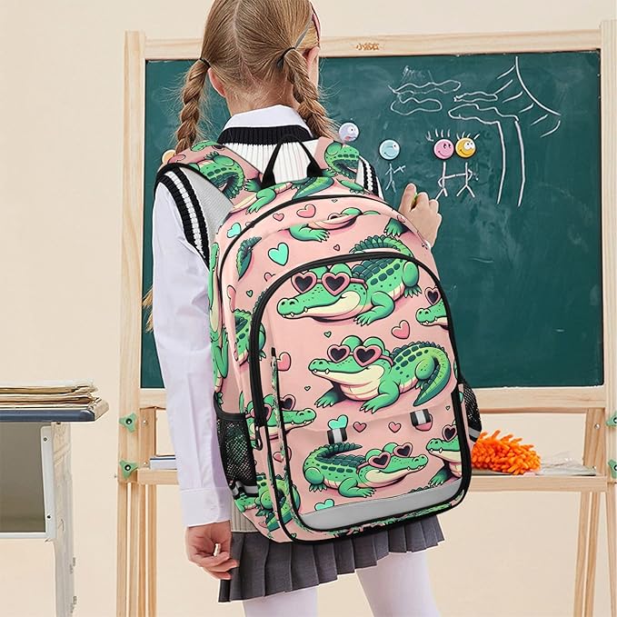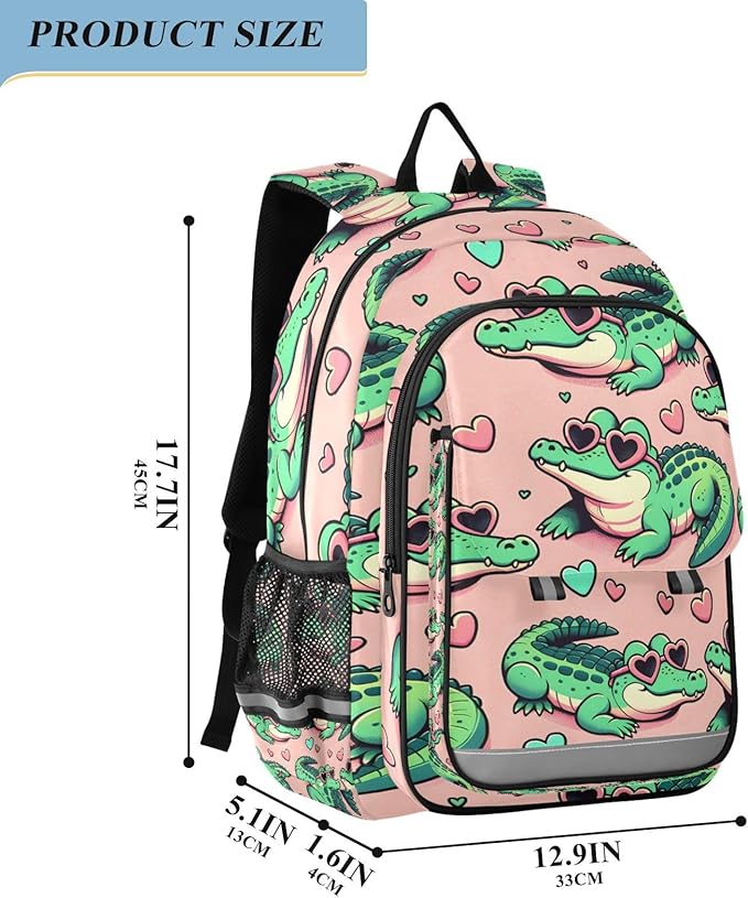 Alligator Crocodiles Laptop Backpack Purse for Women Men School Bag 17 Inch Bookbag Student Boys Girls Travel Casual Daypack