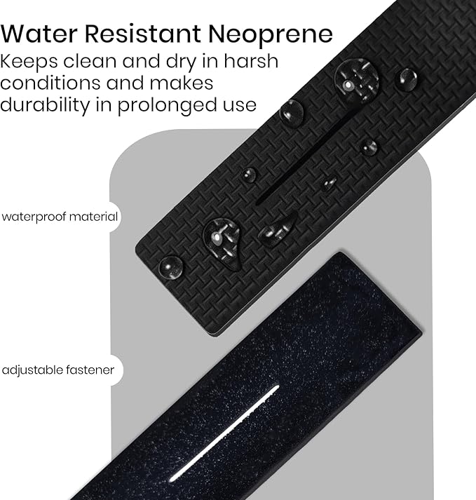 - Water Resistant Neoprene: Made of high-quality premium neoprene, the tie wraps feature resistance to water and abrasion. They keep clean and dry all the time in harsh conditions to reliably storage fishing rods
