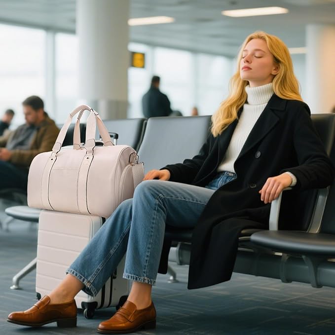 - 【Spacious & Multi-Compartment Design】Never dig for your essentials again. This generously sized bag features multiple intelligent compartments to neatly store clothes, toiletries, shoes, and a laptop (fits up to 21"). The extra-wide, cushioned shoulder strap comfortably distributes weight, making it easy to carry even when fully packed.