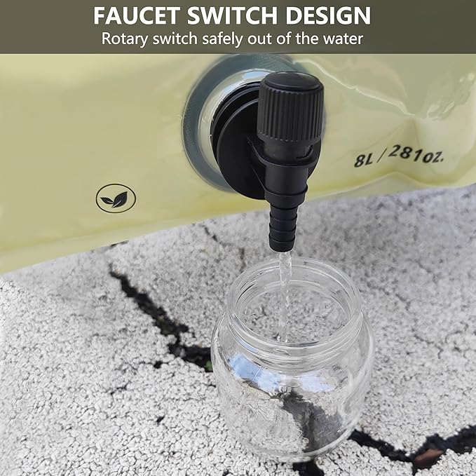 Collapsible 8L Water Storage Bag, BPA-Free Portable Folding Water Jug with Adjustable Faucet, Leakproof Emergency Water Bag for Camping, Hiking, Riding, Outdoor Sport (Beige & Green, 4)