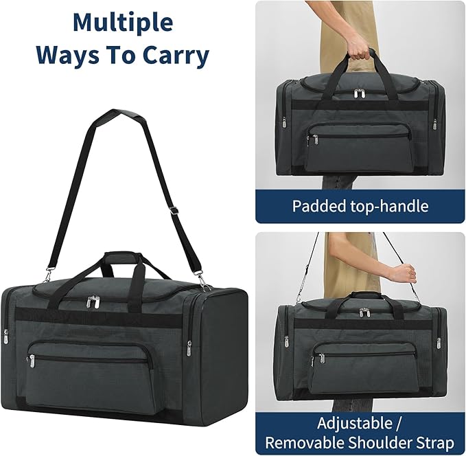 - EASY TO CARRY: Designed with padded top handle and padded shoulderstrap, also the metal hooks, can hold more than 25kg. lt's very strong androomy, really a perfect large duffle bag for men.
