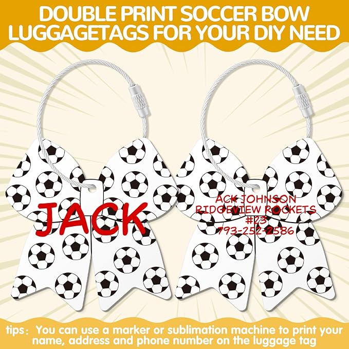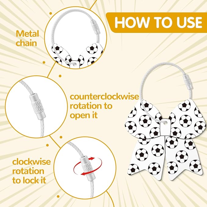 - Pattern Tag: Soccer bow tag for suitcases, simple yet stylish, perfectly matching your enthusiasm for soccer. You will receive 12 pcs of soccer bow tags, enough to meet your uses and replacement needs, and you can also share them with others.