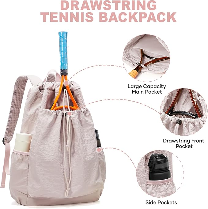 coofay Tennis Bags for Women Men Pickleball Bag Beach Tennis Racket Bag Drawstring Pickleball Tennis Backpack Badminton Bags
