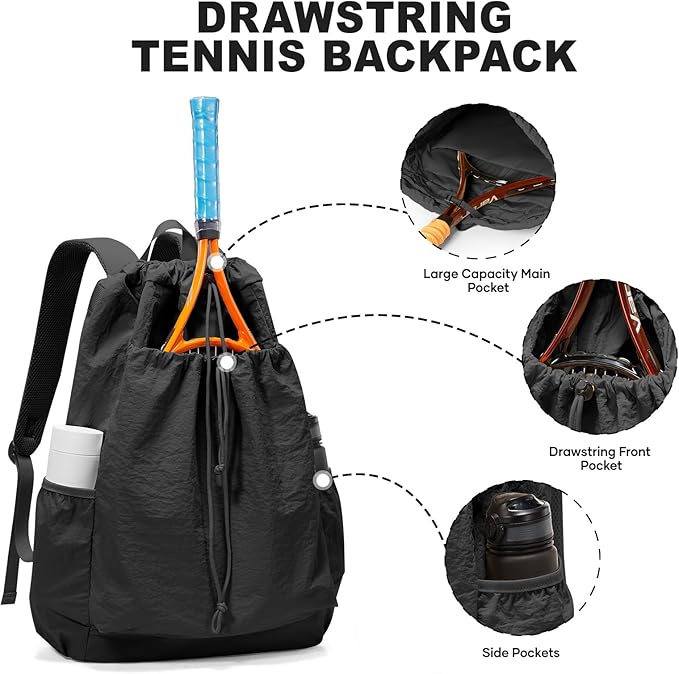 coofay Tennis Bags for Women Men Pickleball Bag Beach Tennis Racket Bag Drawstring Pickleball Tennis Backpack Badminton Bags