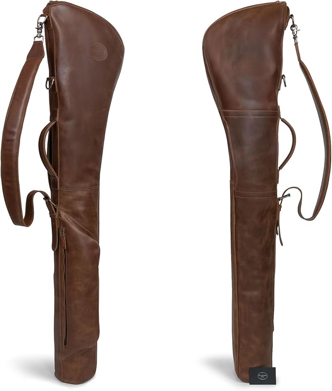 - VINTAGE TRAVELGUARD: Whether you're a seasoned pro or a jet-setting enthusiast, our golf travel bag ensures seamless travel across continents. With its robust full-grain leather exterior and water-resistant canvas interior, this golf travel bag offers unrivaled durability against all your travel challenges. Conquer the skies without worry, as it fits perfectly as a golf club travel case, ensuring your cherished clubs are always ready for your next game.