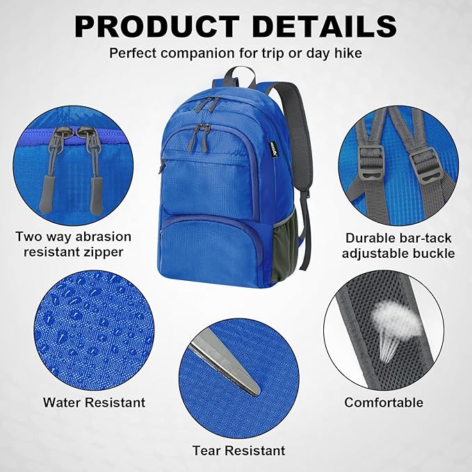 - MULTIFUNCTION: This packable backpack is suitable for daily use, short trips,vacation, travel, camping, work, and shopping, etc. Fit for men and women.It is the perfect partner no matter outdoor sports or leisure activities in or out of the city.