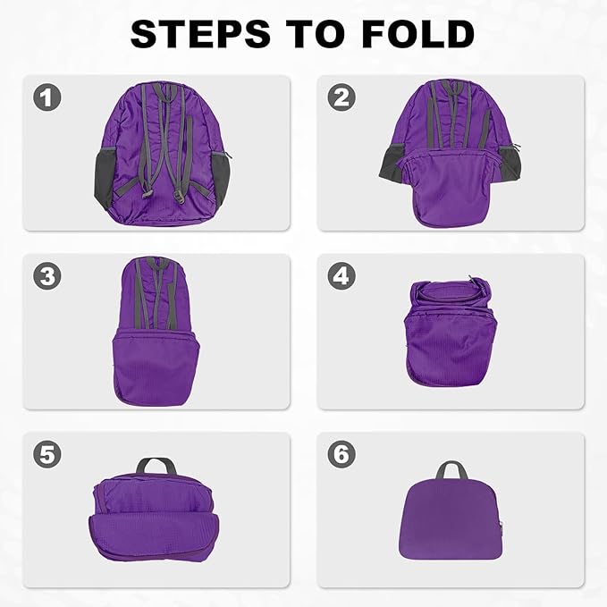 HOLYLUCK 20L lightweight packable Hiking Daypack Foldable Backpack for Men Women Small Travel Outdoor Foldable Shoulder Bag-purple