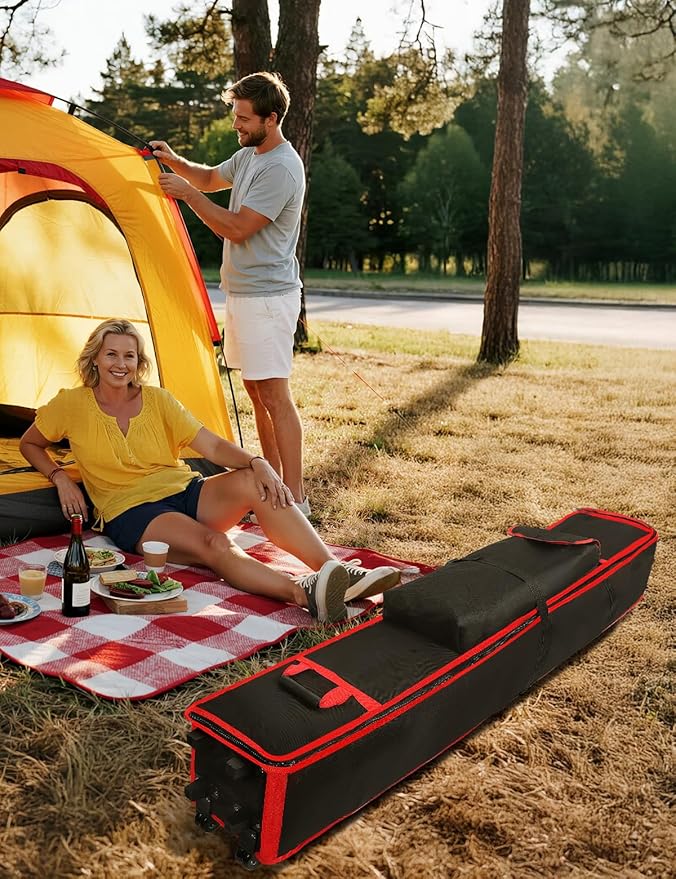 - 【Smooth Rolling Wheels for Easy Transport】Equipped with sturdy 360° wheels and a reinforced bottom stand, this wheeled carrying case allows effortless mobility on sidewalks, campsites, or event venues