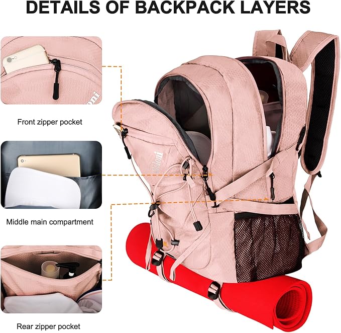 45L Hiking Backpack with Rain Cover, Lightweight Foldable Camping Backpack for Trekking, Water-Resistant Daypack with Hiking Pole & Mat Carrying System,Pink