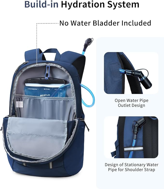 - 【Inner and Outer Connection Design】 Backpack has hooks inside the main compartment to hold the hydration bladder, and the straw exits from the right side exit of the backpack. Regarding this exit, you can also use it as a USB cable exit. This will better energize you or your electronic devices while in hiking , traveling, camping and so on(No Water Bladder Included)