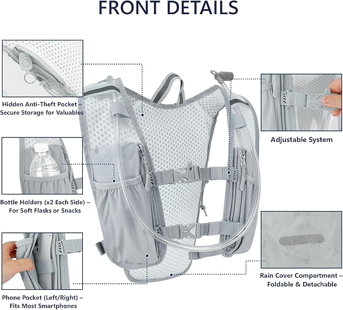 Zavothy Hydration Running Vest for Men & Women β Lightweight 1.5L Hydration Pack with Phone Pockets, Water Bottle Holders, Reflective Strips, Rain Cover β Trail Running, Cycling, Marathon