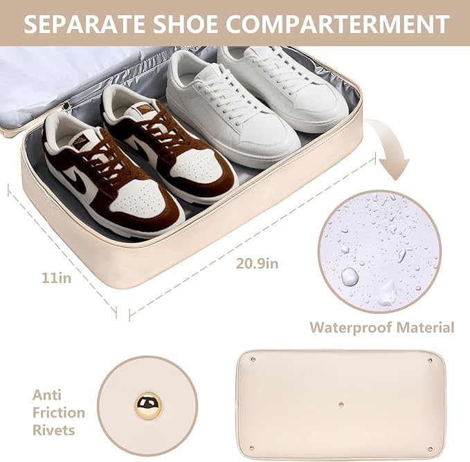- 【Spacious & Multi-Compartment Design】Never dig for your essentials again. This generously sized bag features multiple intelligent compartments to neatly store clothes, toiletries, shoes, and a laptop (fits up to 21"). The extra-wide, cushioned shoulder strap comfortably distributes weight, making it easy to carry even when fully packed.