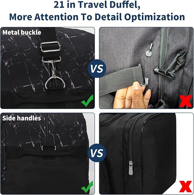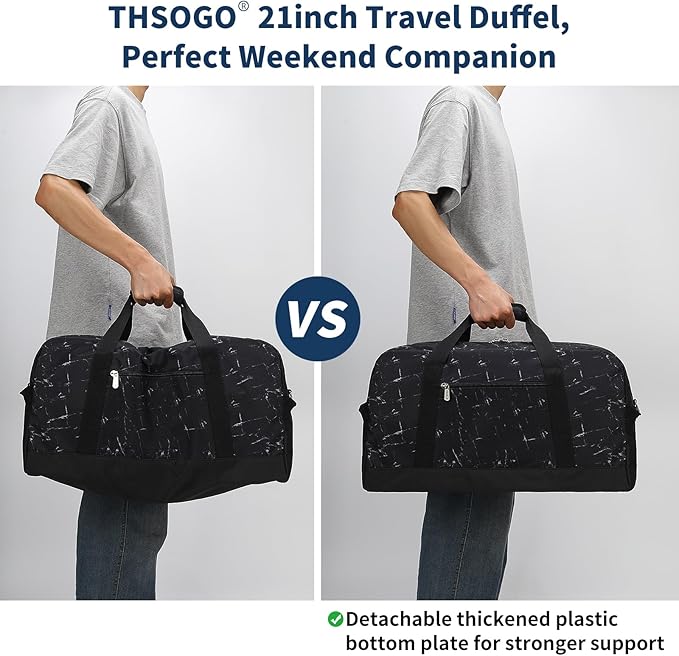 21 inch Gym Bag for Men - 40L Travel Duffel Bag Sport Duffle Bags for Weekend Overnight with Bottom Support (Marble Black)
