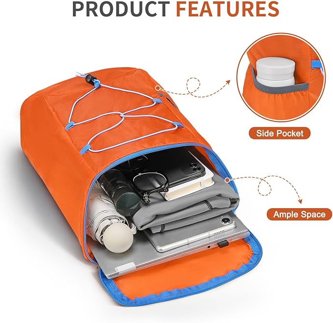 20L Hiking-Daypack Lightweight Foldable Travel Packable Backpack for Camping Cycling Outdoor, Orange