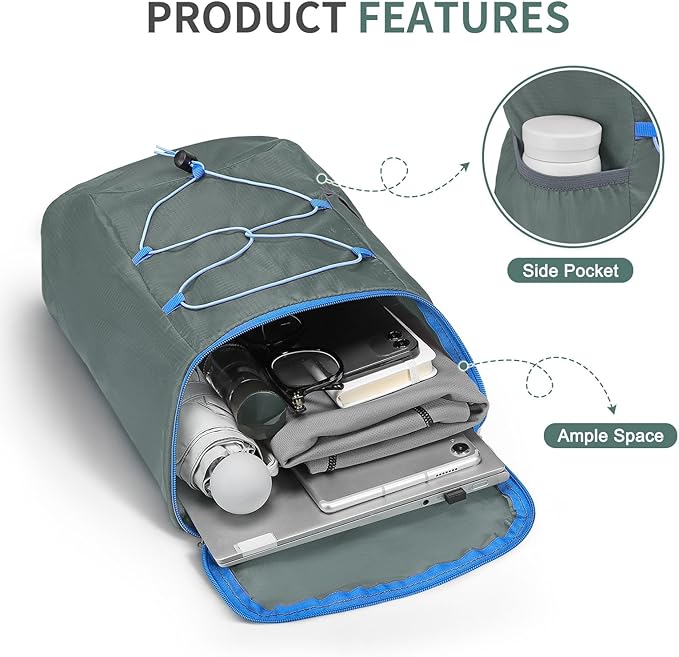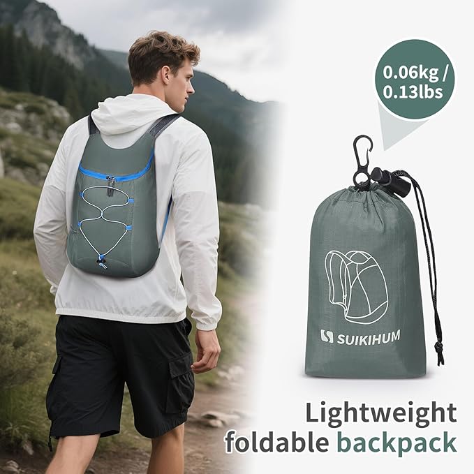 - -Ultra-Lightweight- --This foldable travel hiking backpack has a capacity of 20L and weighs only 2.3 ounces. The storage size is 8.6 (L) * 3.1 (W) * 1.06 (H) inch. The size after unfolding is: 11.79 (L) * 4.32 (W) * 16.11 (H). After the backpack is folded, it can be put into a pocket or inner bag. It is very easy to store and does not take up space