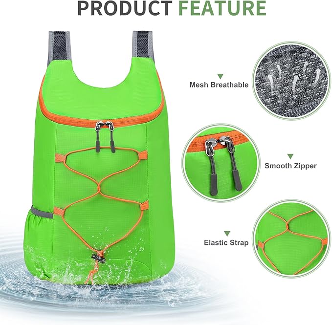 20L Hiking-Daypack Lightweight Foldable Travel Packable Backpack for Camping Cycling Outdoor, Green
