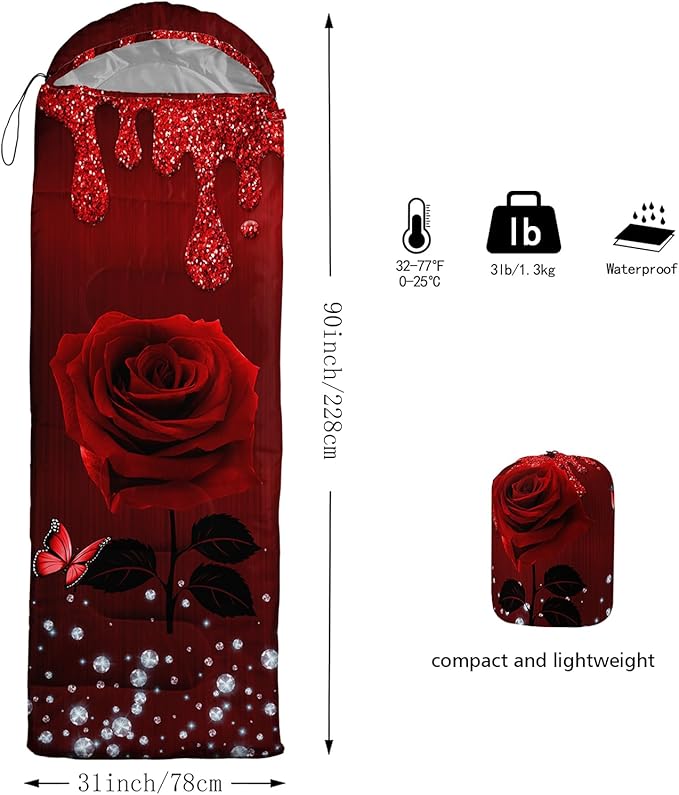 - 【Fits for 3 Seasons】: Size - 31 by 90 inches (W x D). Our sleeping bag can be used in 3 seasons with a design temperature of 32℉-77℉(0℃-25℃). These bags also have a weather resistant waterproof design to keep you warm and prevent you from any dampness.