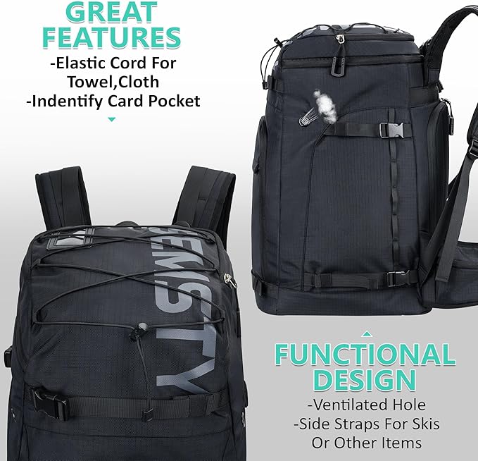 - Comfortable and Adjustable:Ergonomic back panel will reduce the pressure on both your back and shoulders, also the soft padded EVA mesh can stop the boots from knocking your back. All the straps are adjustable to better suit your frame, prevent the ski bag and boot bag from swaying. A perfect boot bag for skiing and carry on.