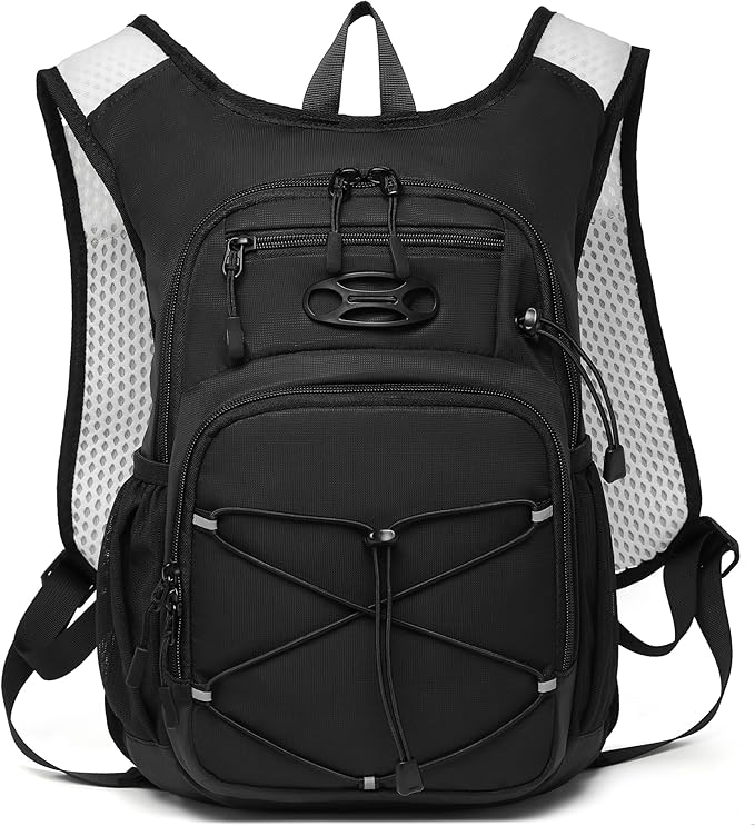 - Lightweight 12-liter hydration backpack: This ultra-light 8.5 oz hydration backpack comes with a 2-liter OR 3-liter water bladder. Made with waterproof and tear-resistant fabric, the PU-coated nylon backpack can carry up to 25 pounds.