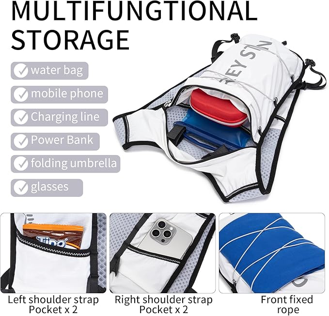 - Hydration ability: The lightweight hydration backpack is made of nylon waterproof material and equipped with a 1.5-liter water bag, suitable for replenishing water during outdoor sports. Open water bags are very easy to clean.
