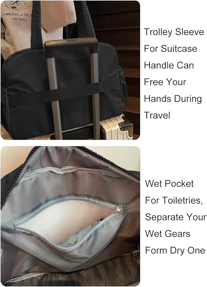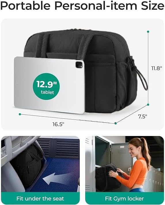 - Size:15.75'' x 11.72 '' x 7.87'', it is the perfect carry-on compliant bag for airline travel and the trolley sleeve for suitcase handle can free your hands. You can use it as a sports gym bag, a carry on bag, a travel bag and a daily bag, perfect for workout, rides, gym, yoga, beach, pool, camping, practice days or weekend trips.