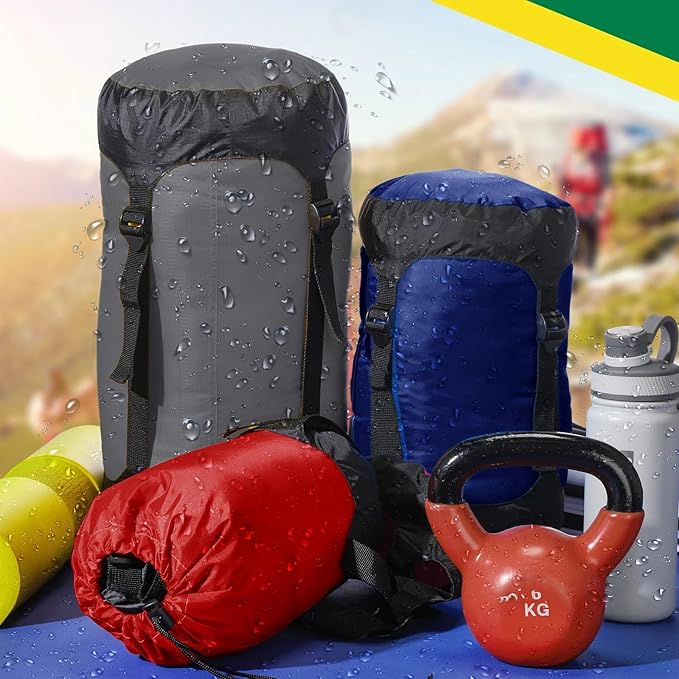 - Uncompromising Quality for Reliable Storage Solution: our sleeping bag stuff sack adopts quality polyester taffeta and PU waterproof coating, with acute attention to detail for long lasting uses; From the quality material to the secure straps, every feature is designed to give you a reliable and easy to use storage solution for your outdoor adventures; Offers waterproof protection and keeps your stuff dry; However, it is not include the case where water completely submerges the bag