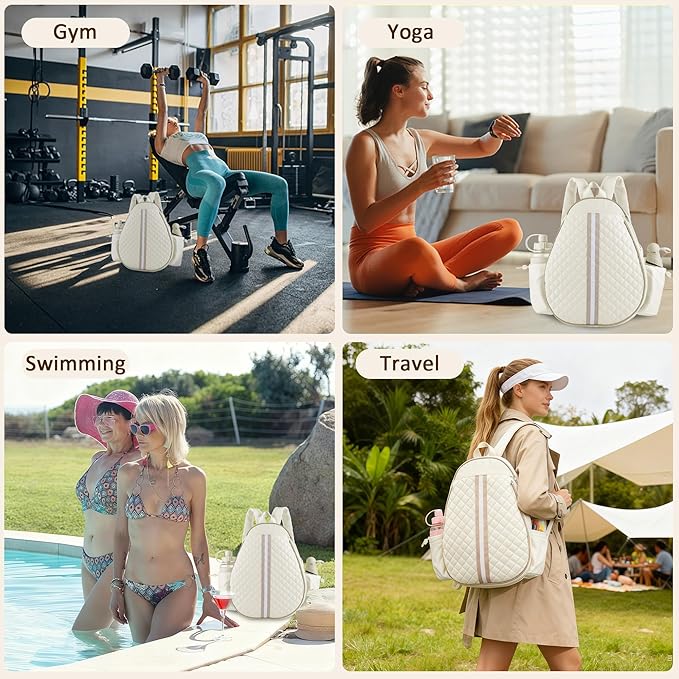 - Versatile Carry Options & Stylish Quilted Look - The tennis backpack with adjustable straps allow seamless switching between single-shoulder slinging and dual-shoulder backpacking, providing ergonomic comfort for extended wear. The trendy quilted pattern pairs effortlessly with sports bras, leggings, or casual outfits, making it a go-to accessory both on and off the court