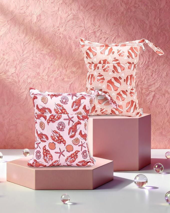 ALVABABY 2pcs Cloth Diaper Wet Dry Bags Waterproof Reusable with Two Zippered Pockets Travel Beach Pool Daycare Soiled Baby Items Yoga Gym Bag for Swimsuits or Wet Clothes 2LM23