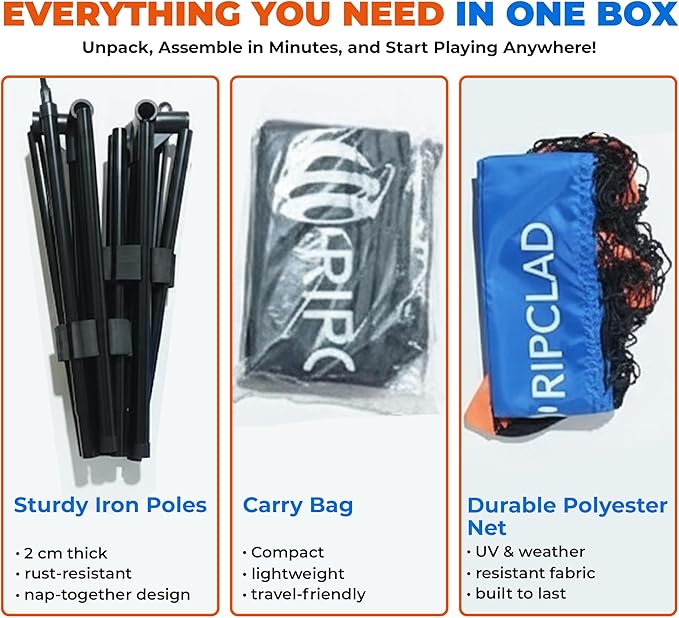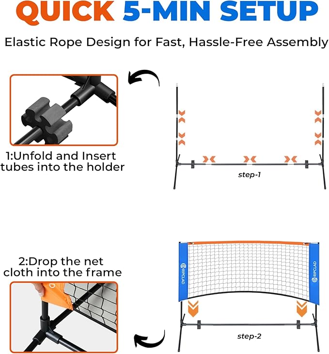 - ๐๐ฎ๐ข๐๐ค ๐๐๐ญ๐ฎ๐ฉ ๐๐๐ฌ๐ข๐ ๐ง: Enjoy instant play with a simple assembly system that takes just minutes. This pickle ball net includes elastic connected poles for fast setup, making it a great indoor pickleball net for homes, gyms, or garages.