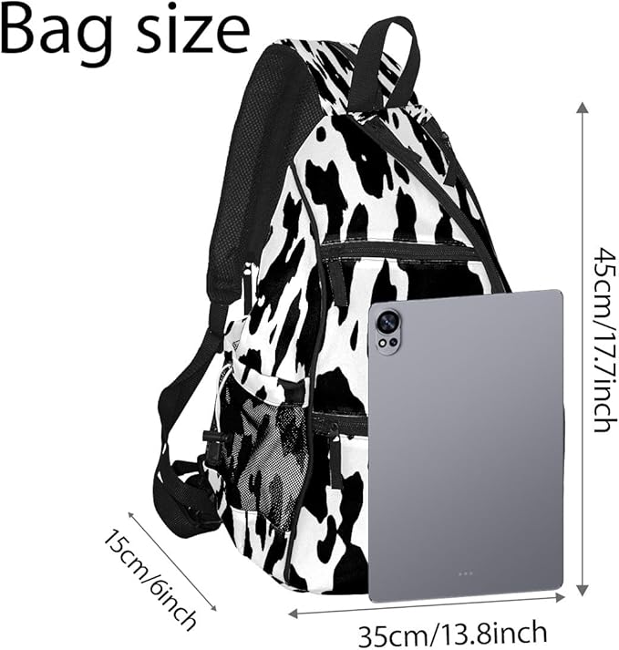 Pickleball Bag Cow Print Pickle Ball Backpack for Women Men Premium Lightweight Crossbody Sling Bag Sports Backpack for Pickleball Paddle Tennis