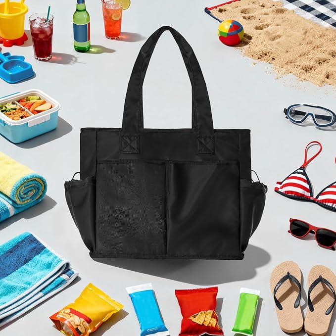 - Multiple Pockets for Organized Storage:Includes internal waterproof pouches for wet items or electronics, exterior mesh and nylon pockets, plus a built-in bottle opener. Everything from sunscreen to keys has its place in this practical tote cooler bag.
