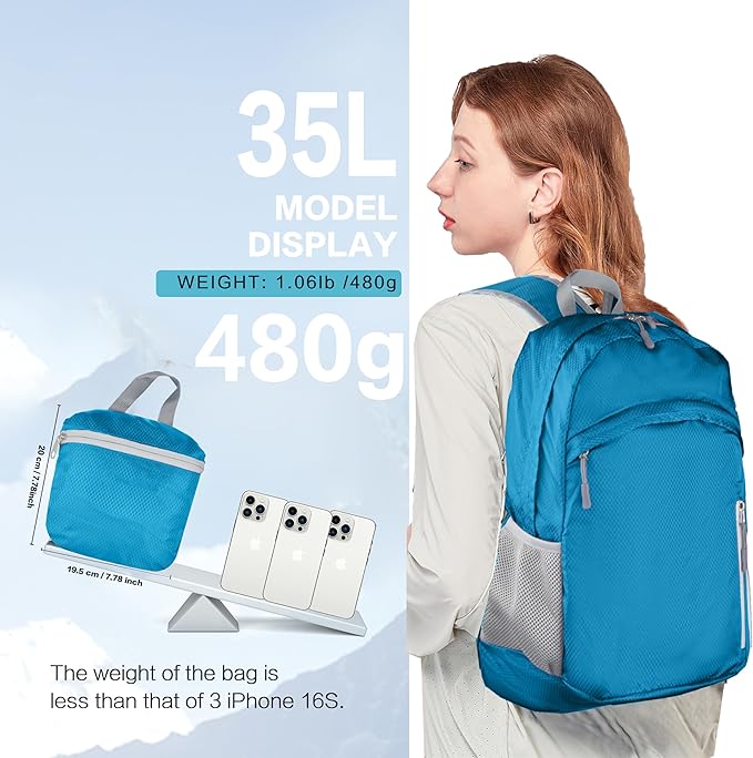 - 5.【Foldable Design】This backpack is foldable for easy carrying—it can be folded into its matching storage pouch. The foldable design allows it to fit into any narrow space, enabling you to carry it effortlessly and maximize its usage.