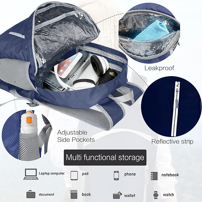 35L Waterproof Backpack Beach Foldable Lightweight Dry Wet Split Hiking Backpack Men Women Dark Blue