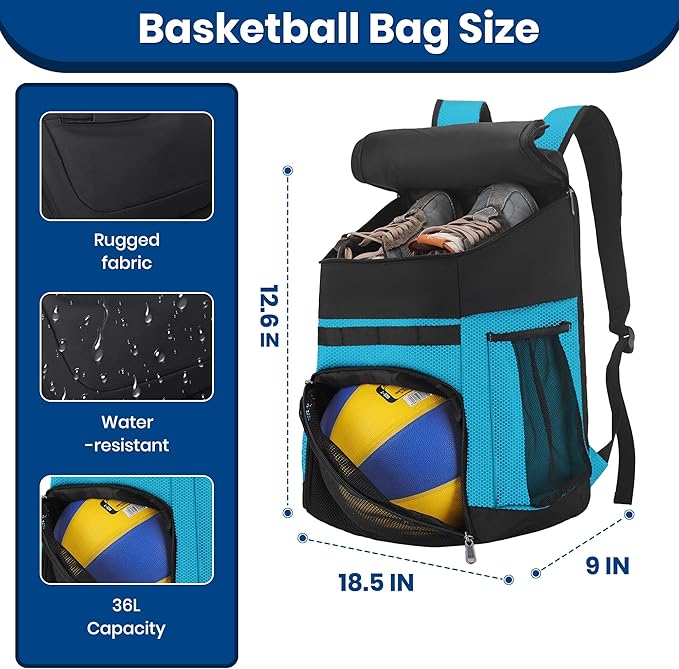- Ball Compartment: Separate compartment designed for carrying a ball. It can be easily expanded or collapsed to fit different sizes,This basketball bag easily accommodates a regulation-size basketball