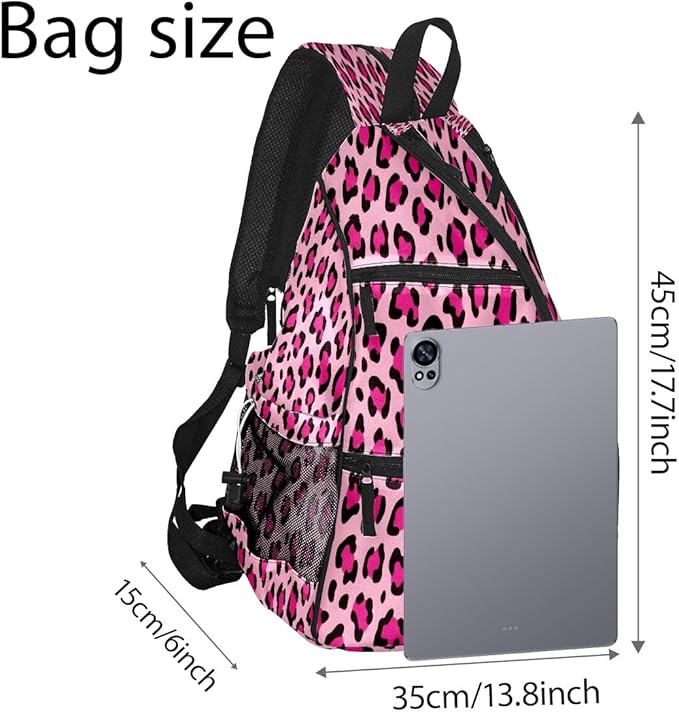Brown Leopard Print Premium Nylon Pickleball Backpack, 3-in-1 Convertible Shoulder Crossbody Sling Bag for Women Men, Lightweight Bag Fits 2-4 Pickleball Paddles & Tennis Sports Gear
